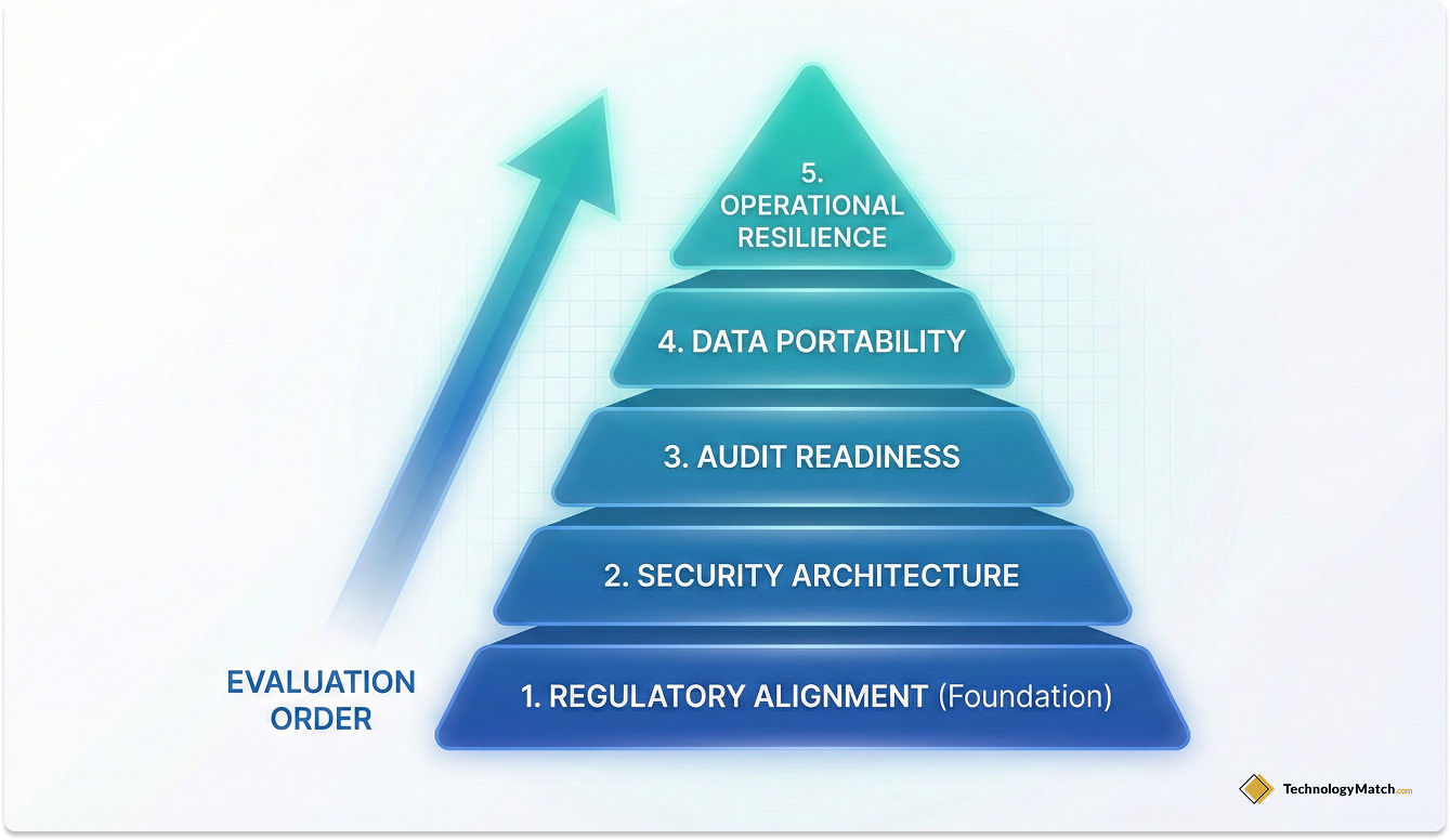The order of operations matters. If a vendor cannot definitively prove they meet your regulatory baseline on Day 1, their feature superiority is entirely irrelevant. You must disqualify them immediately and move on.